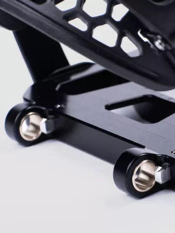 The baseplate is made of high-quality 6082 aluminium. It is lightweight, durable and ready for any ascent. For steep terrain, you can adjust the heel risers in two levels and comfortably accommodate them with your pole. For difficult sections, use the separately available Enfuse crampons. They are easy to clip on during the ascent and offer additional grip even with the heel risers unfolded.